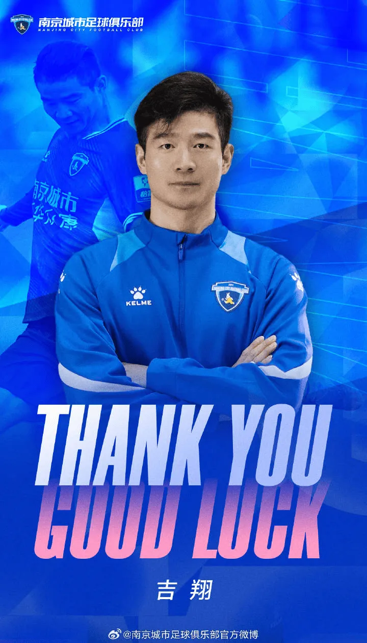 南京城市足球俱乐部衷心感谢吉翔的付出与奉献,祝愿“吉马”未来个人生活和职业道路一切顺利!
